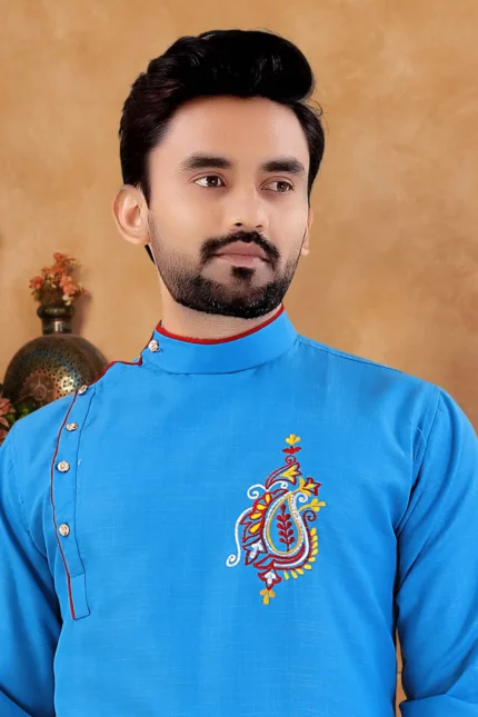 Sky Blue Cotton Blend Regular Fit Men’s Kurta Pyjama Set ( Pack of 1 )
