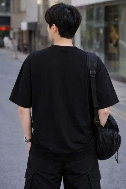 Elega Stride Men Cotton Blend Oversized Fit Printed T-Shirt ( Black )