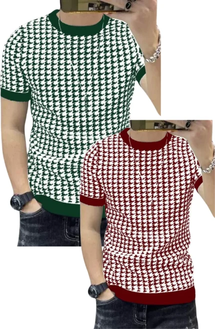 Eyebogler Cotton Blend Regular Fit Printed Half Sleeves Men’s Mandarin Collar T-Shirt – Multicolor ( Pack of 1 )