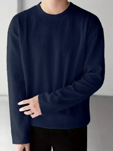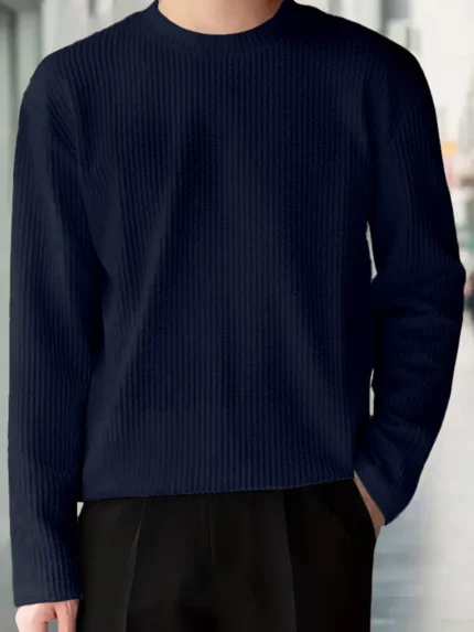 Eyebogler Cotton Blend Oversized Fit Self Design Full Sleeves Men’s Round T-Shirt – Blue ( Pack of 1 )