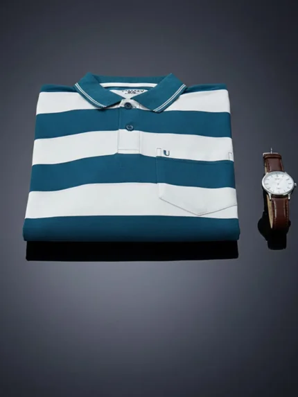UNIBERRY Men Cotton Blend Regular Fit Striped Polo T Shirt ( Teal Blue )