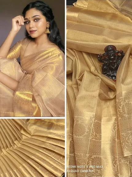 Winklecart Tissue Embellished Banarasi Saree Without Blouse Piece ( Beige )