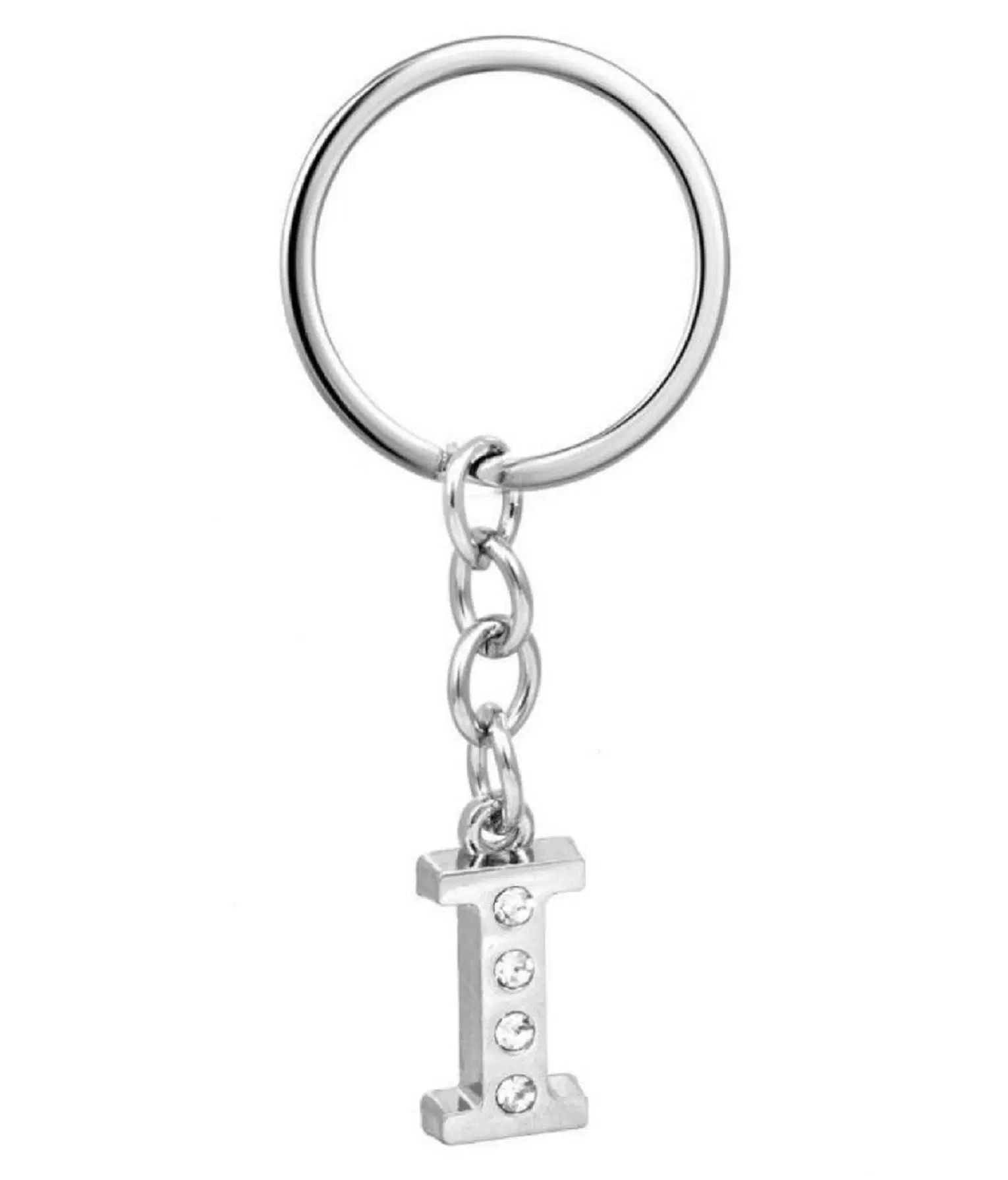 Americ Style Alphabet I Chrome Metal Finish Keyring Key Chain (Silver)
