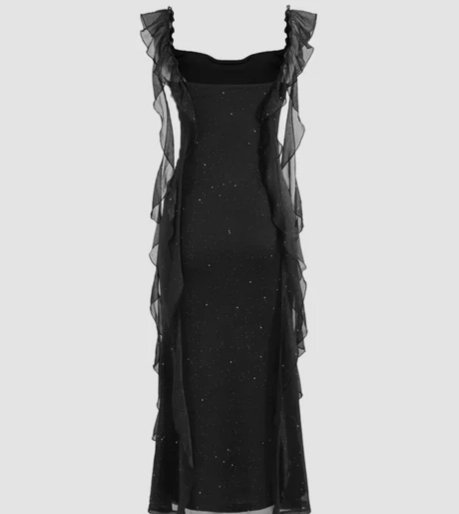 Be the first to review “Black Ruched Ruffle Mesh Sleeveless Bodycon Midi Dress”