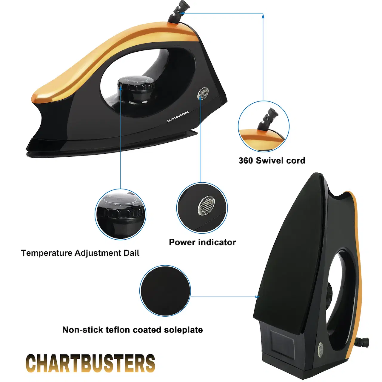 CHARTBUSTERS MJ Black 1000 watt Dry Iron