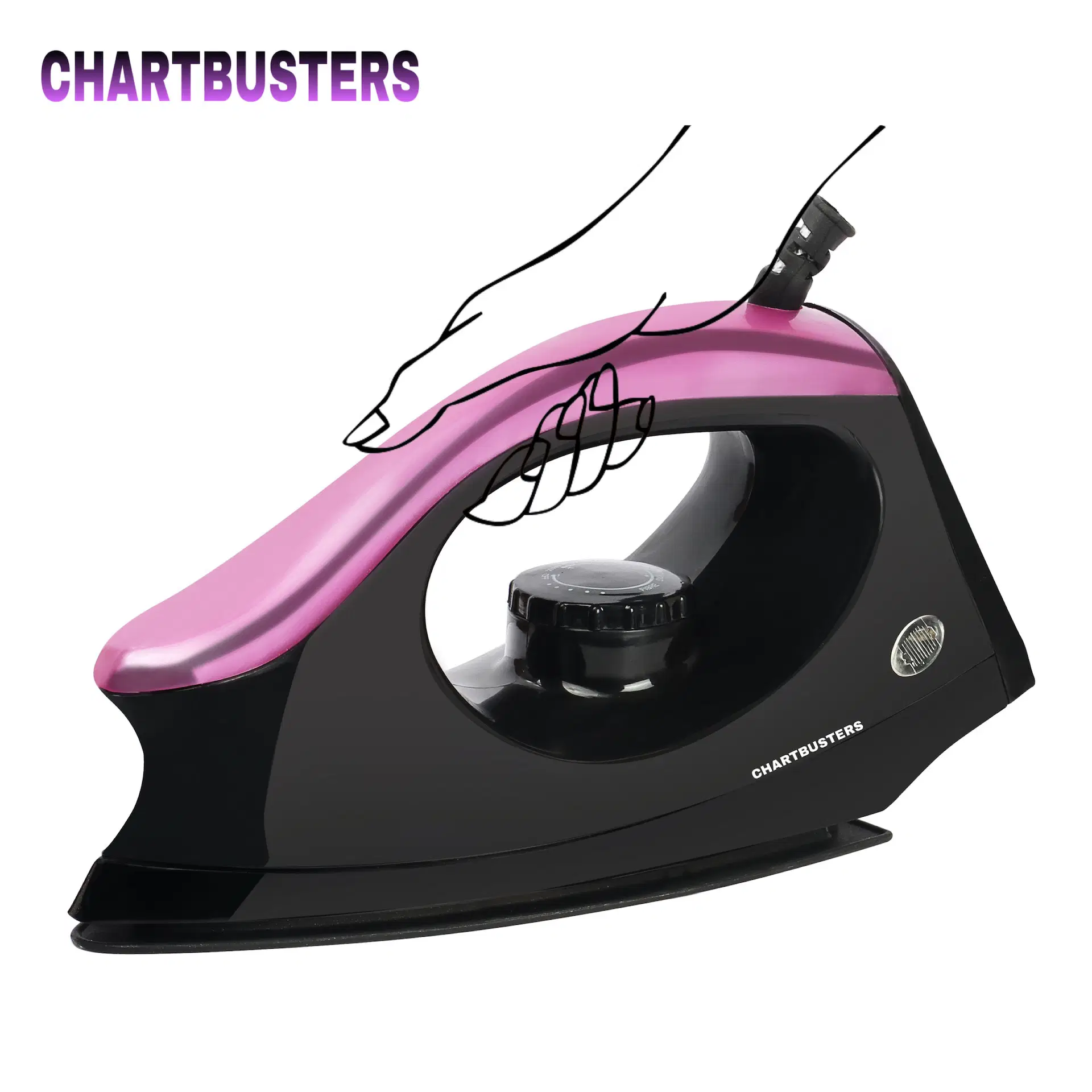 CHARTBUSTERS Keep your clothes looking new with this Non-stick Compact dry iron . Its Coating Plate ensures a smooth gliding experience while the well-designed grip handle ensures a secure and comfortable grip.