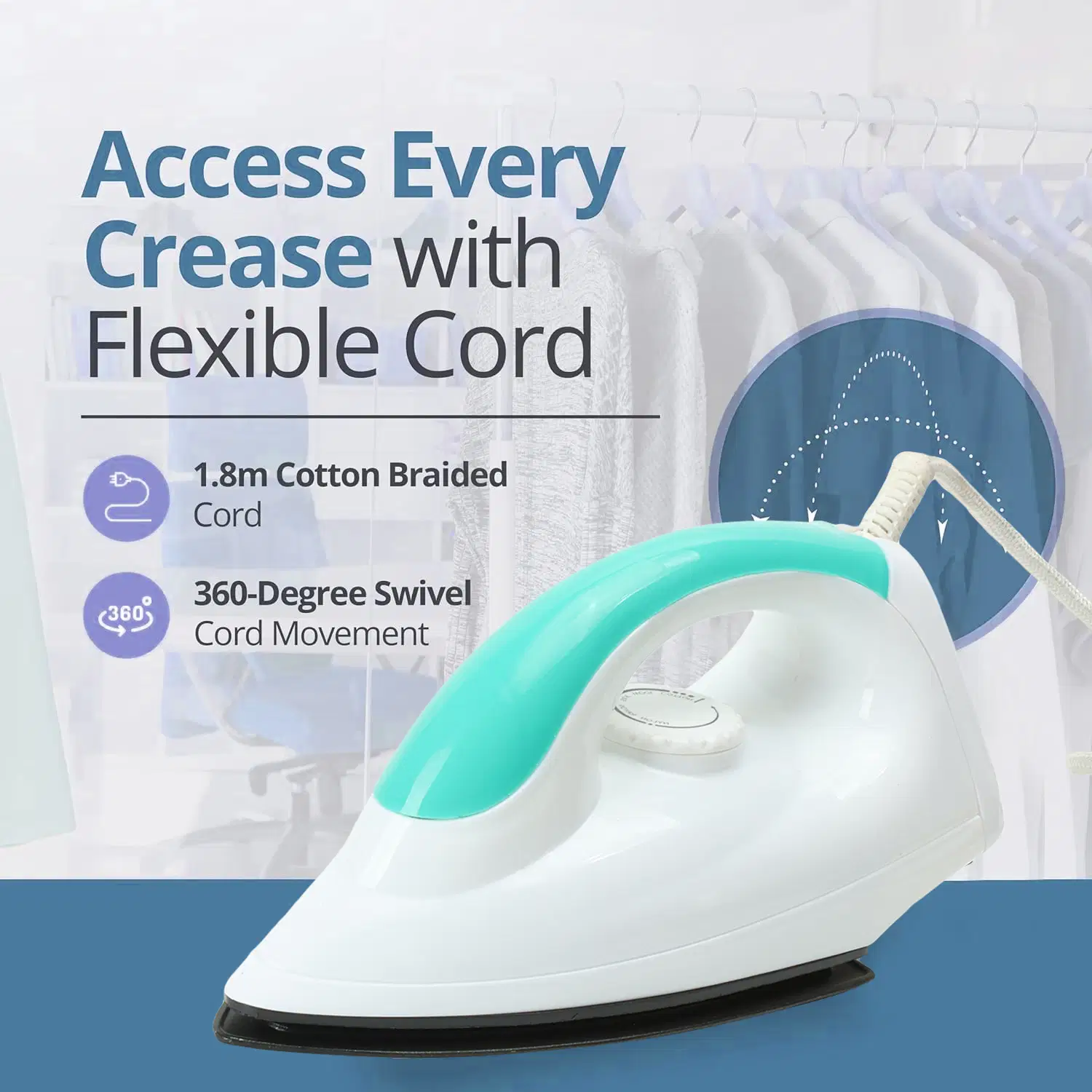 CHARTBUSTERS Keep your clothes looking new with this Non-stick Compact dry iron . Its Coating Plate ensures a smooth gliding experience while the well-designed grip handle ensures a secure and comfortable grip.
