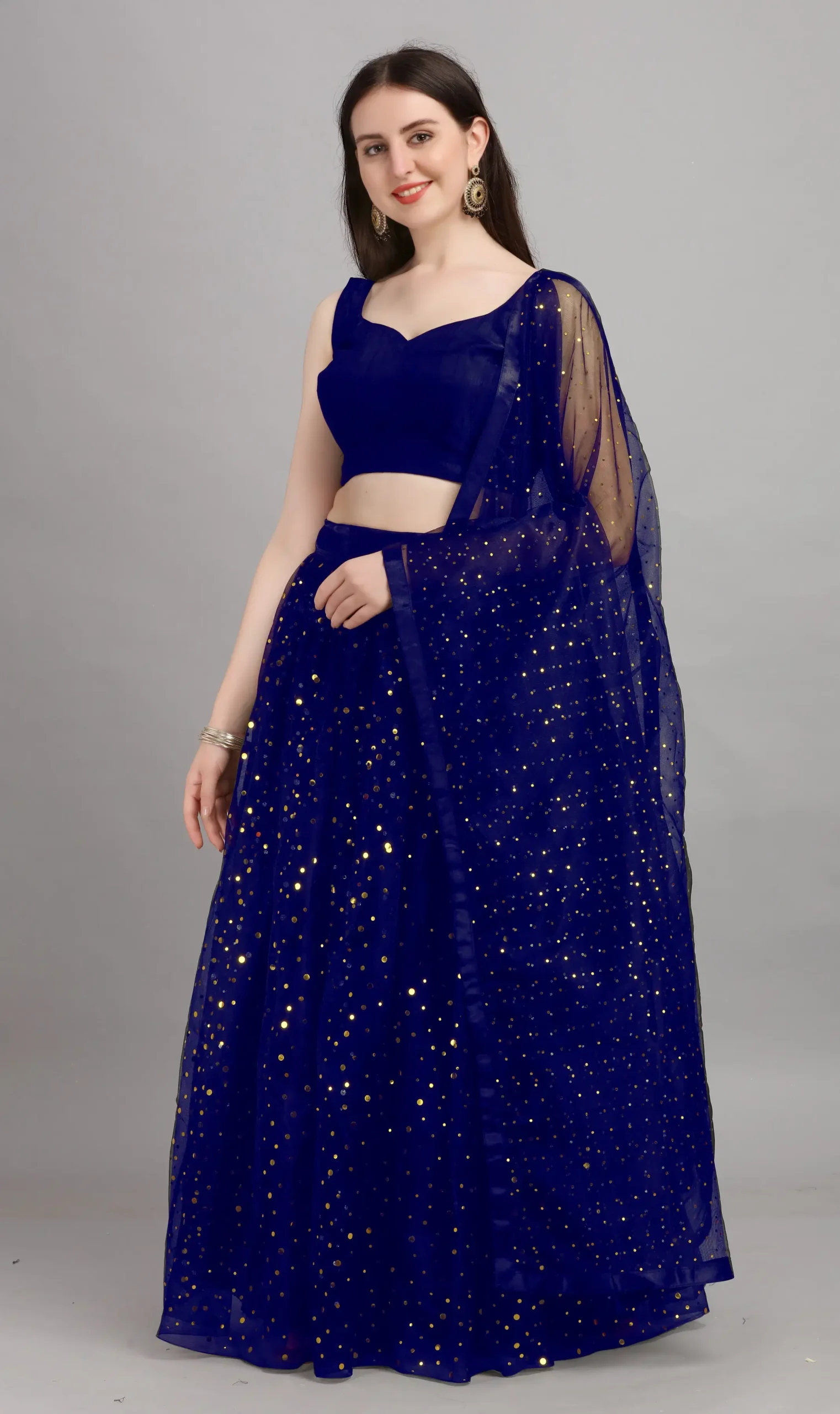 color bucket Navy Net Circular Semi Stitched Lehenga Single