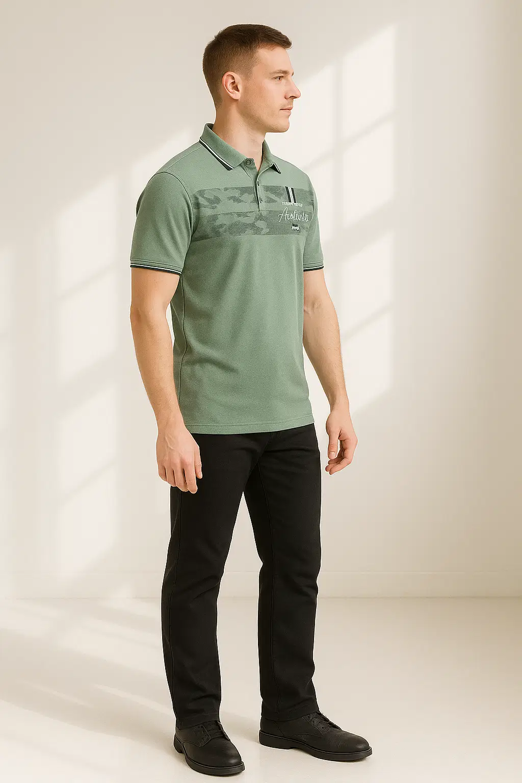 Dollar Men Cotton Regular Fit Printed Polo T Shirt ( Green )