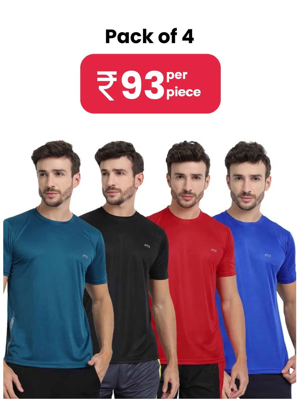 FTX Pack of 4 Polyester Regular Fit Men’s T-Shirt ( Multicolor )
