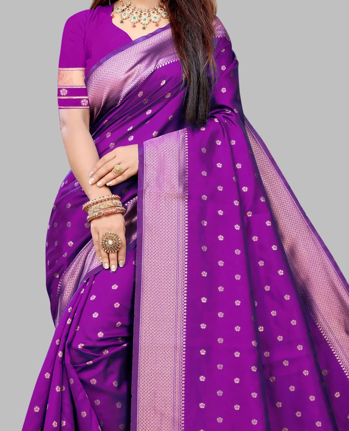 Gazal Fashions Banarasi Silk Embellished Saree With Unstitched Blouse Piece ( Purple ) Original price was: ₹3,000.00.Current price is: ₹367.00.
