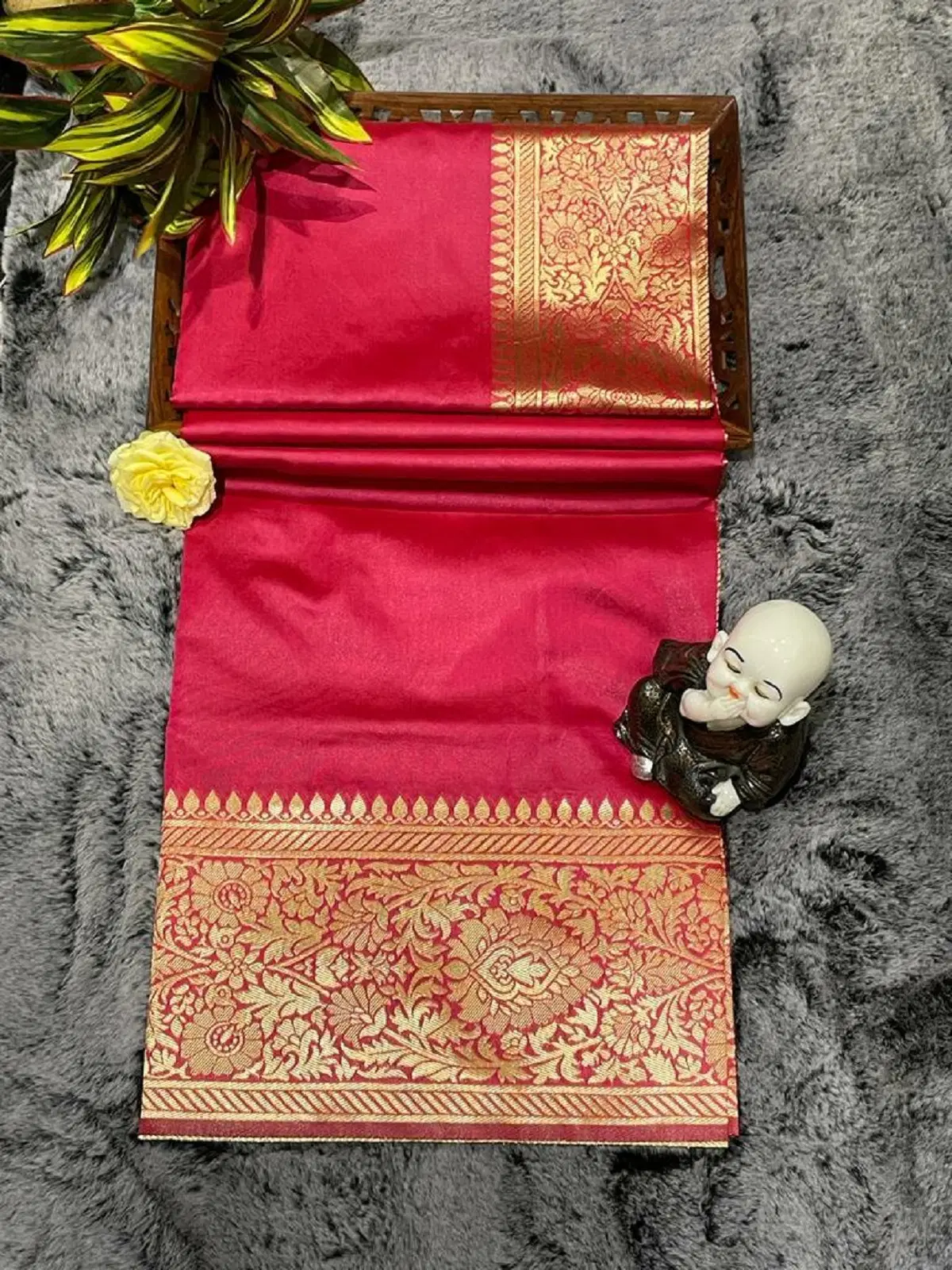 Gazal Fashions Banarasi Silk Embellished Saree With Unstitched Blouse Piece ( Pink )
