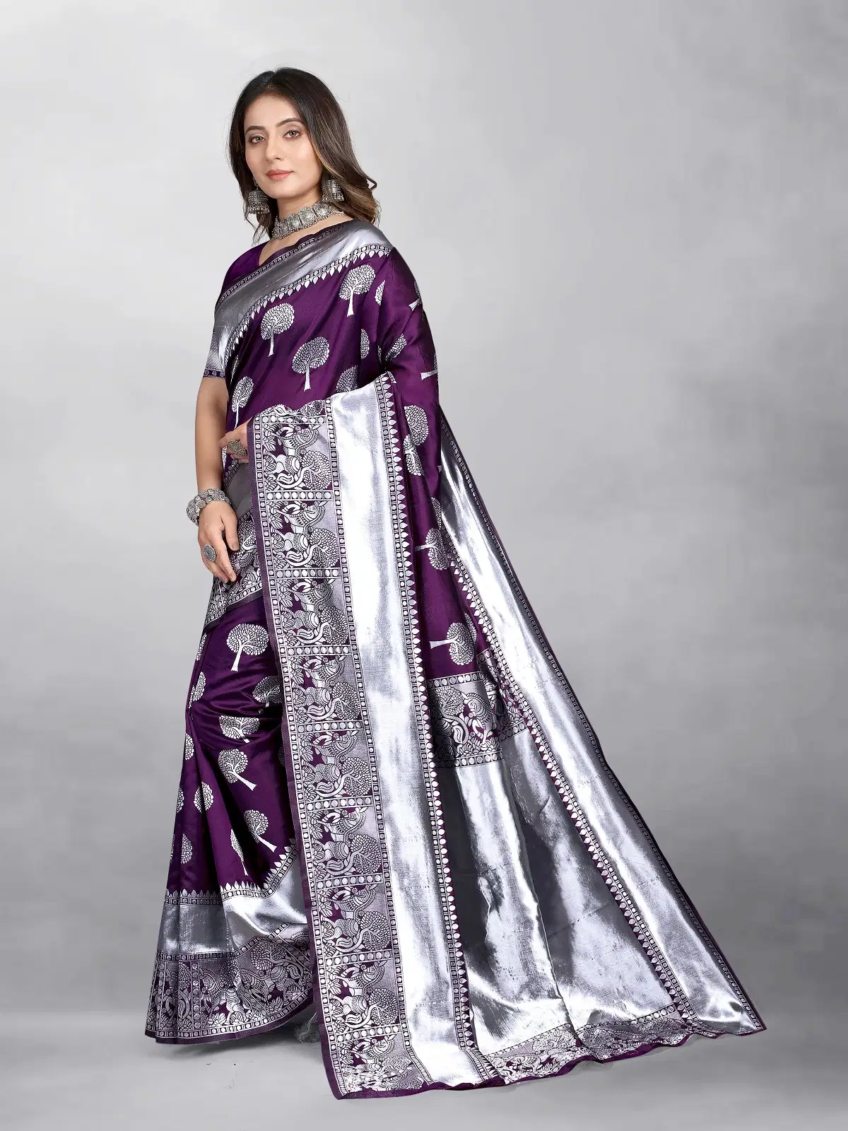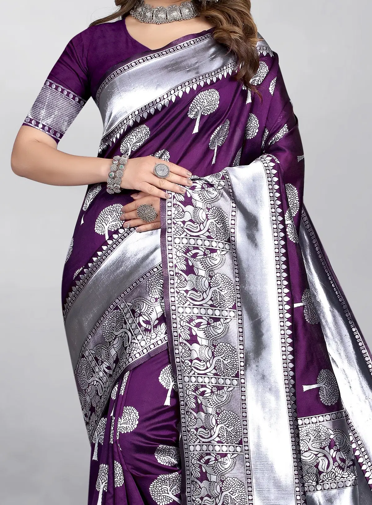 Be the first to review “Gazal Fashions Banarasi Silk Embellished Saree With Unstitched Blouse Piece ( Purple )”