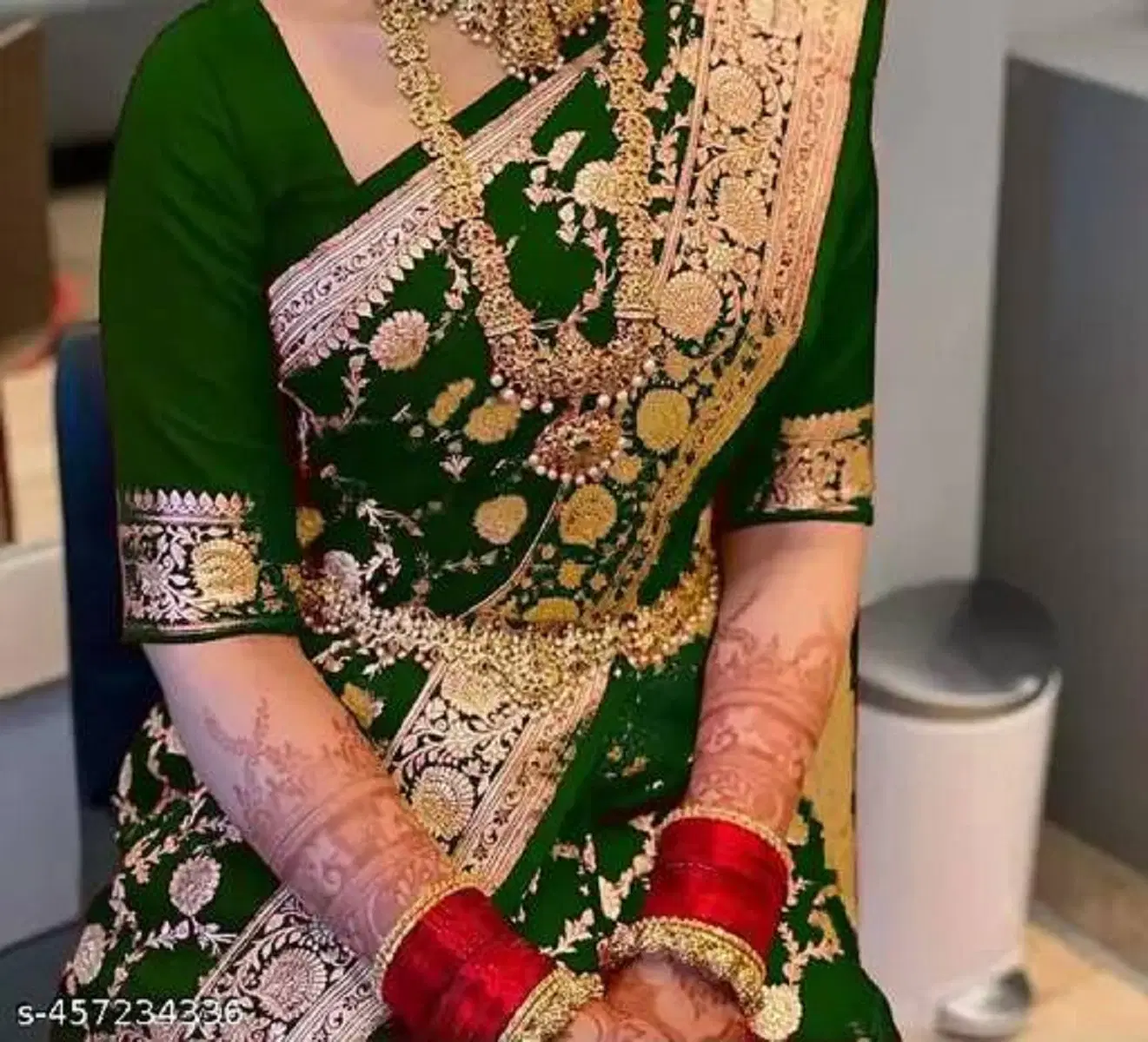 Be the first to review “Gazal Fashions Banarasi Silk Woven Saree With Unstitched Blouse Piece ( Green )”