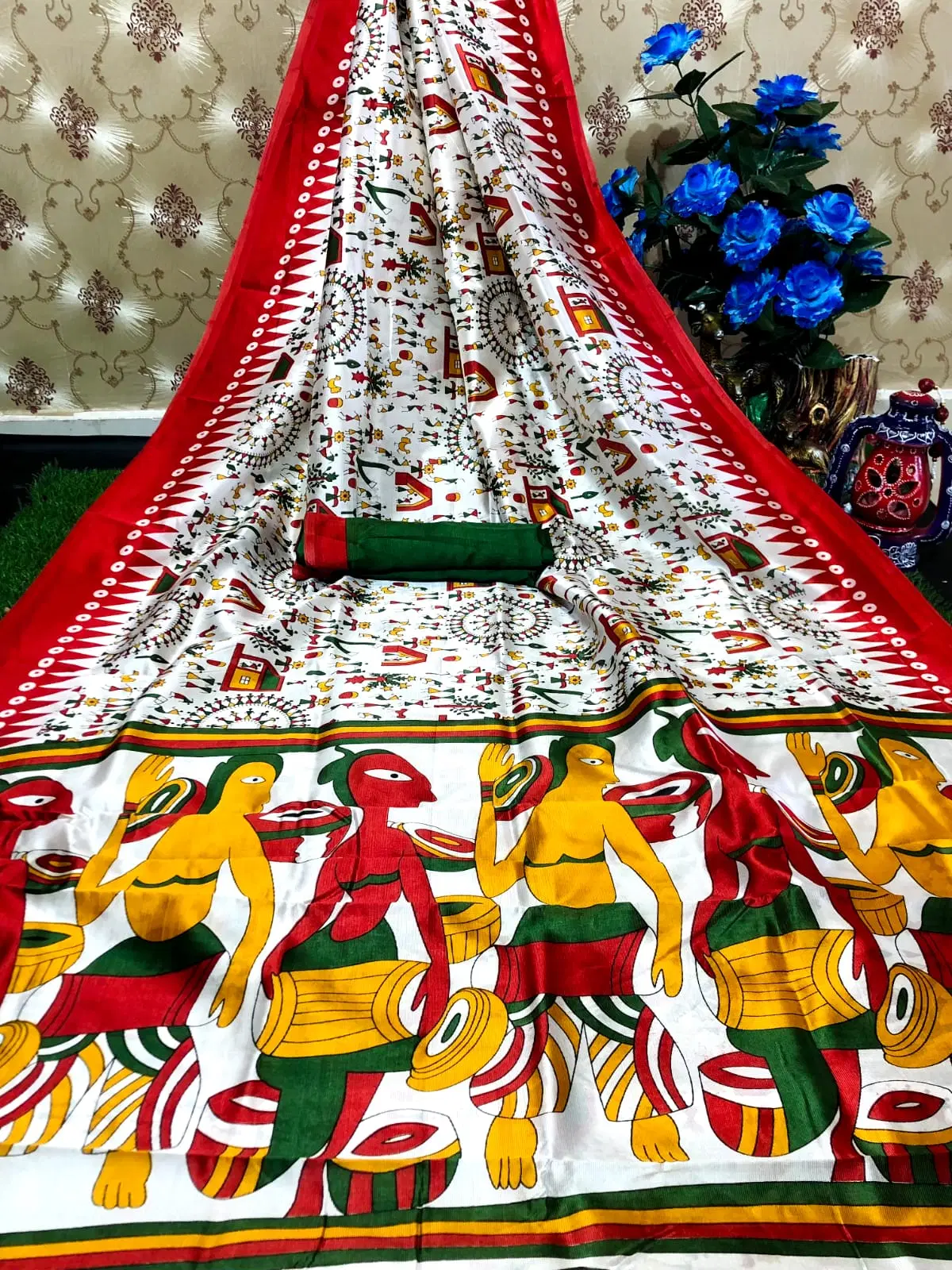 Kanooda Prints Art Silk Printed Saree With Unstitched Blouse Piece ( Red )