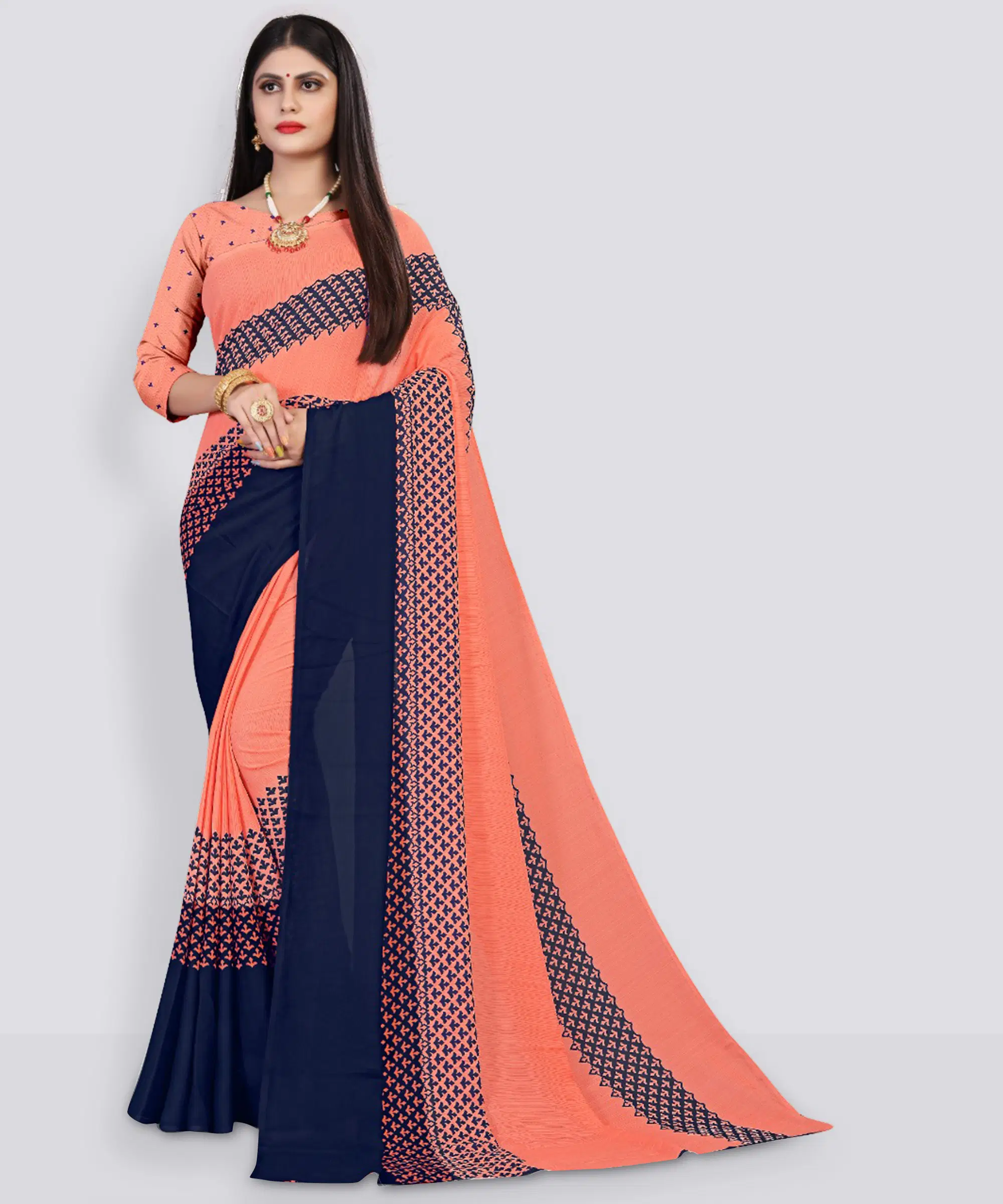 Kanooda Prints Georgette Printed Saree With Unstitched Blouse Piece ( Pink )