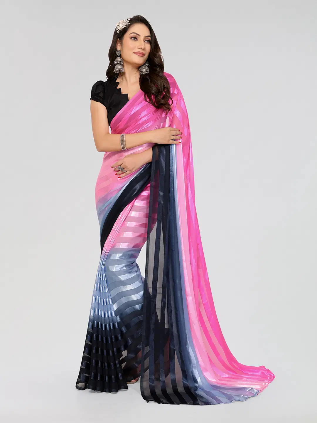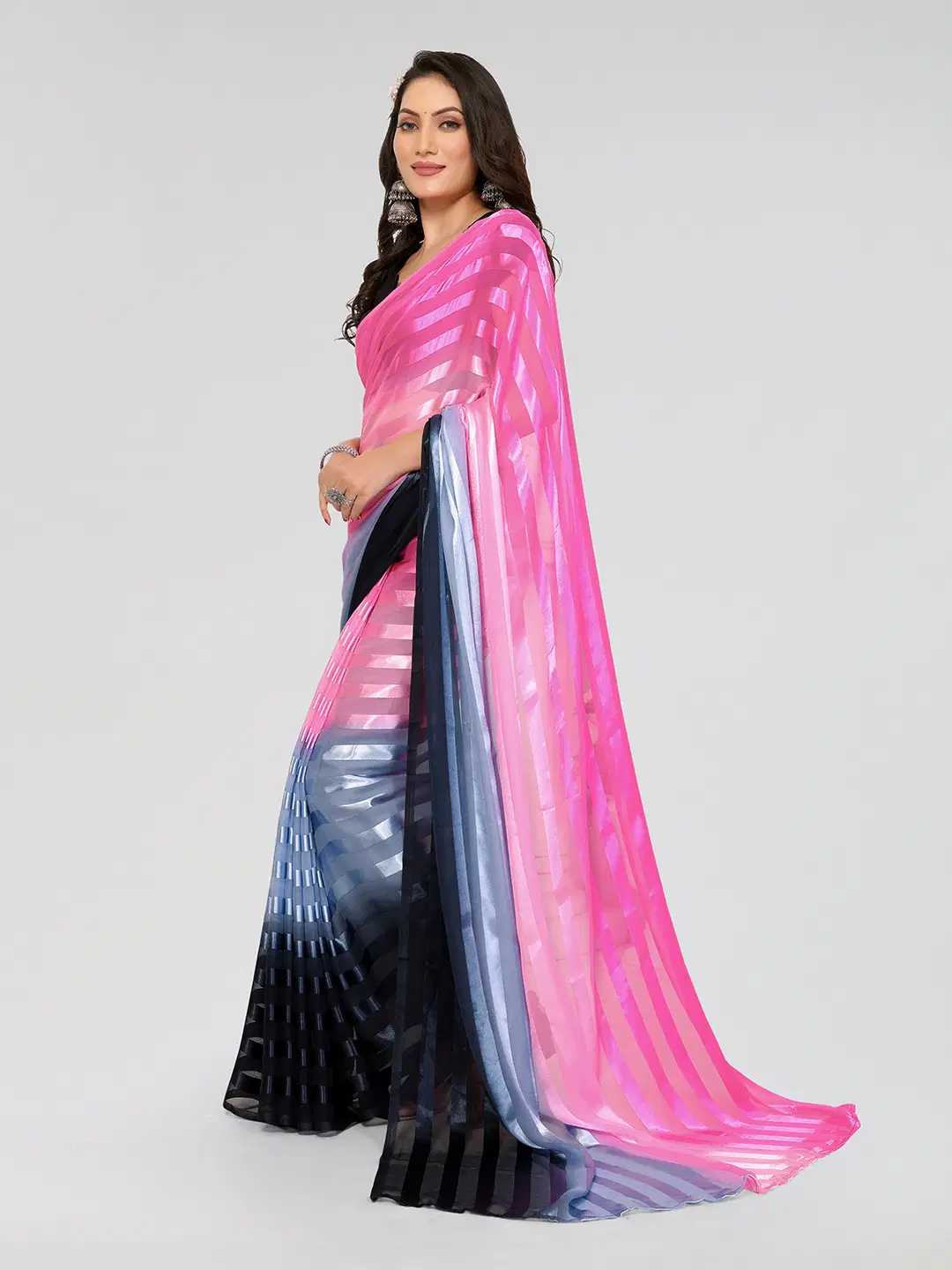 Kashvi Sarees Satin Striped Saree With Unstitched Blouse Piece ( Pink )