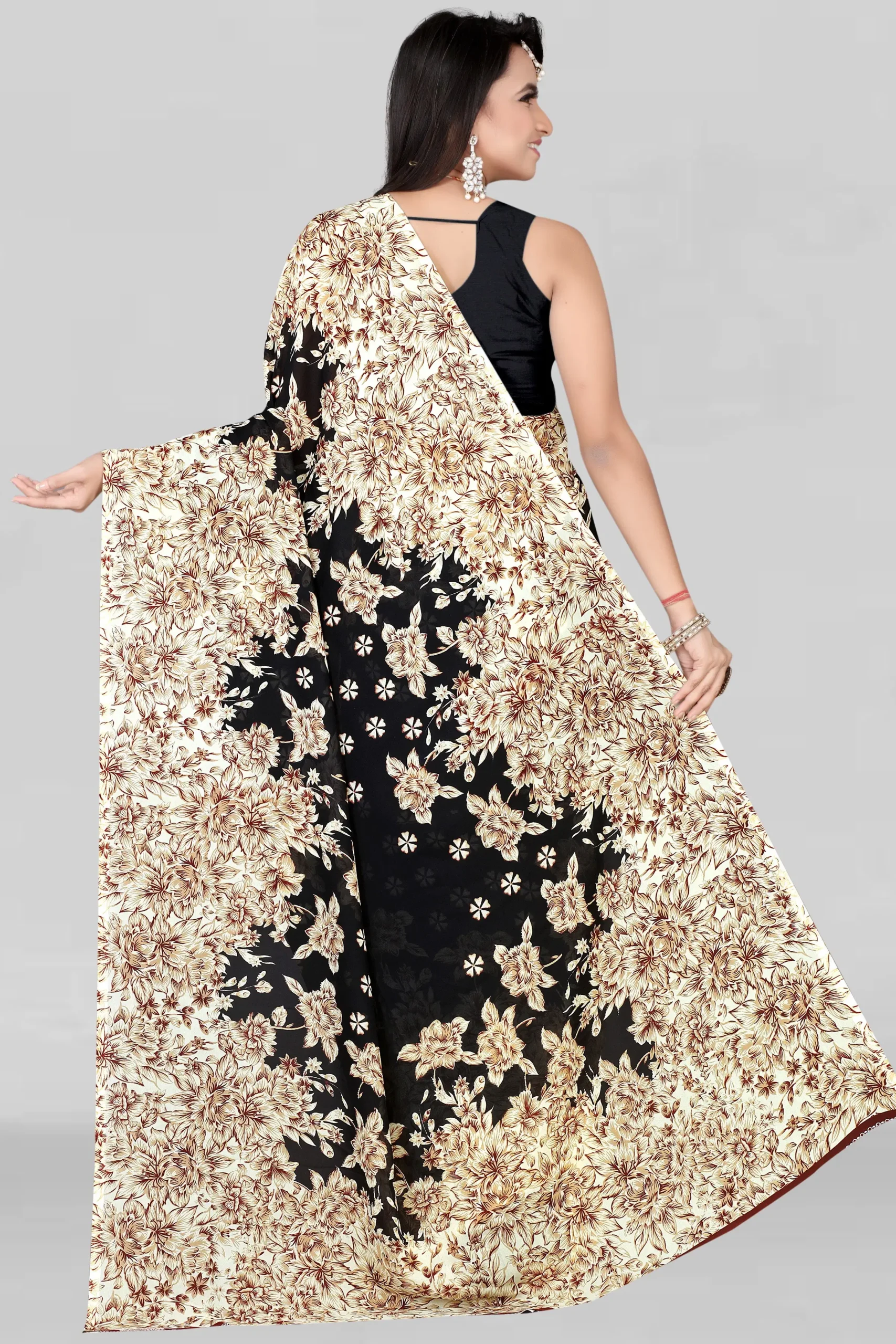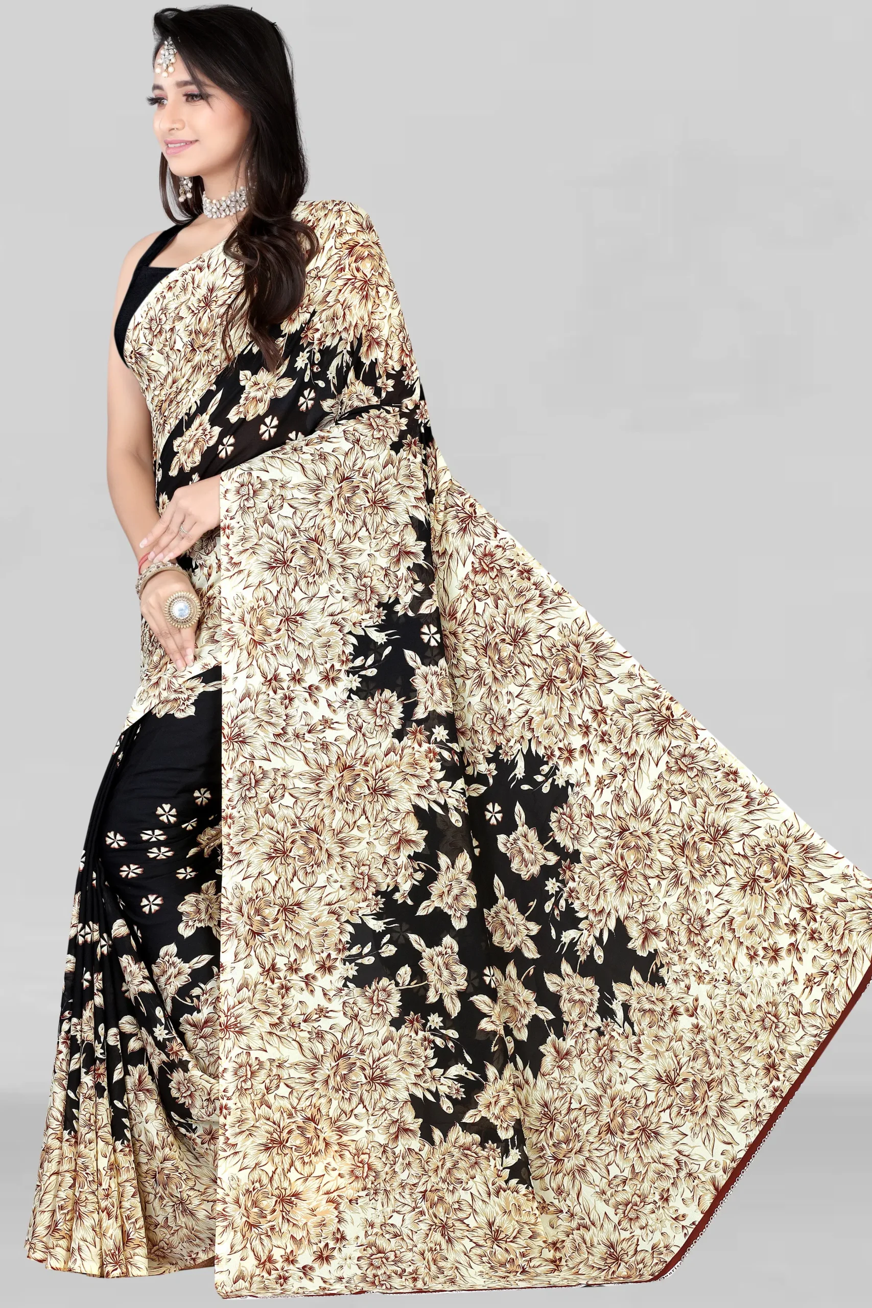 LEELAVATI Georgette Printed Saree With Unstitched Blouse Piece ( Black )
