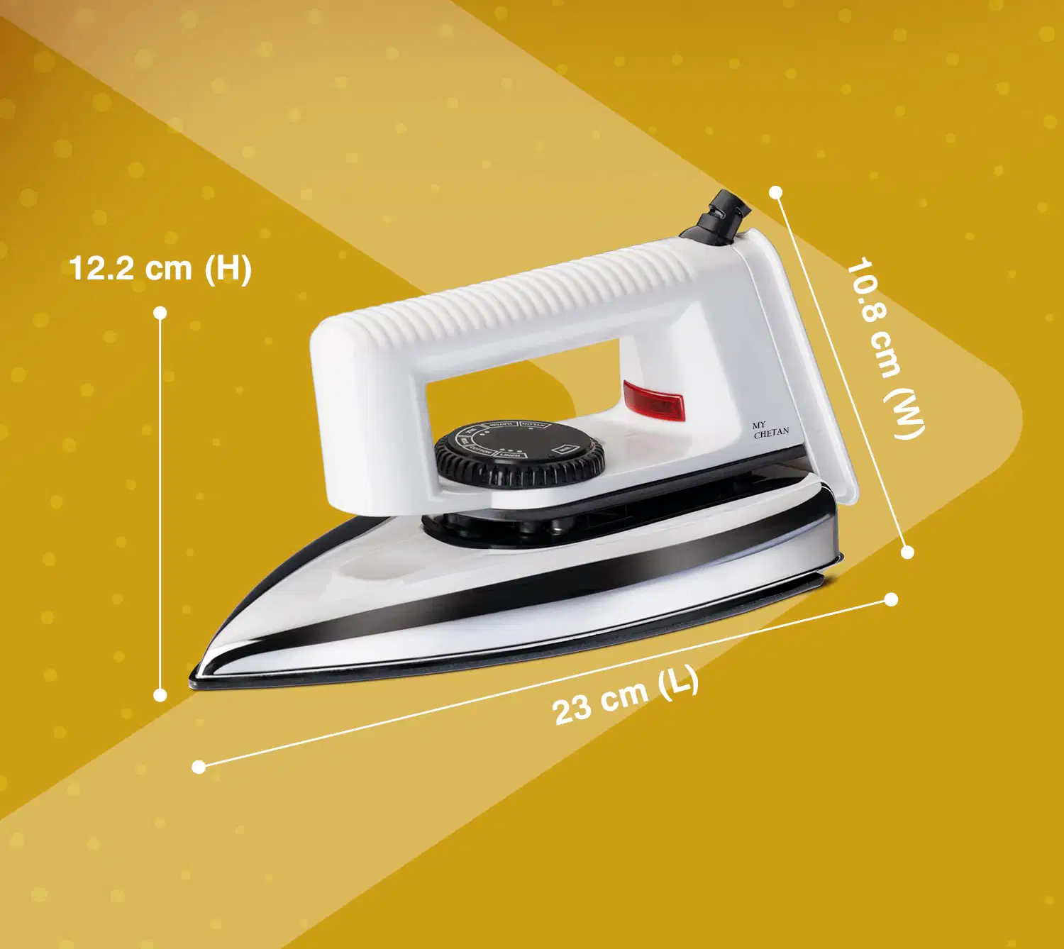 Introducing the MY CHETAN Dry Iron Smarty 750W, a compact and efficient solution designed to make your ironing tasks quick and hassle-free. Whether you’re a student, professional, or a homemaker, this smartly designed dry iron offers reliable performance in a sleek and compact package. With innovative features and user-friendly design, the MY CHETAN Dry Iron Smarty 750W is your go-to companion for achieving crisp, wrinkle-free clothes effortlessly