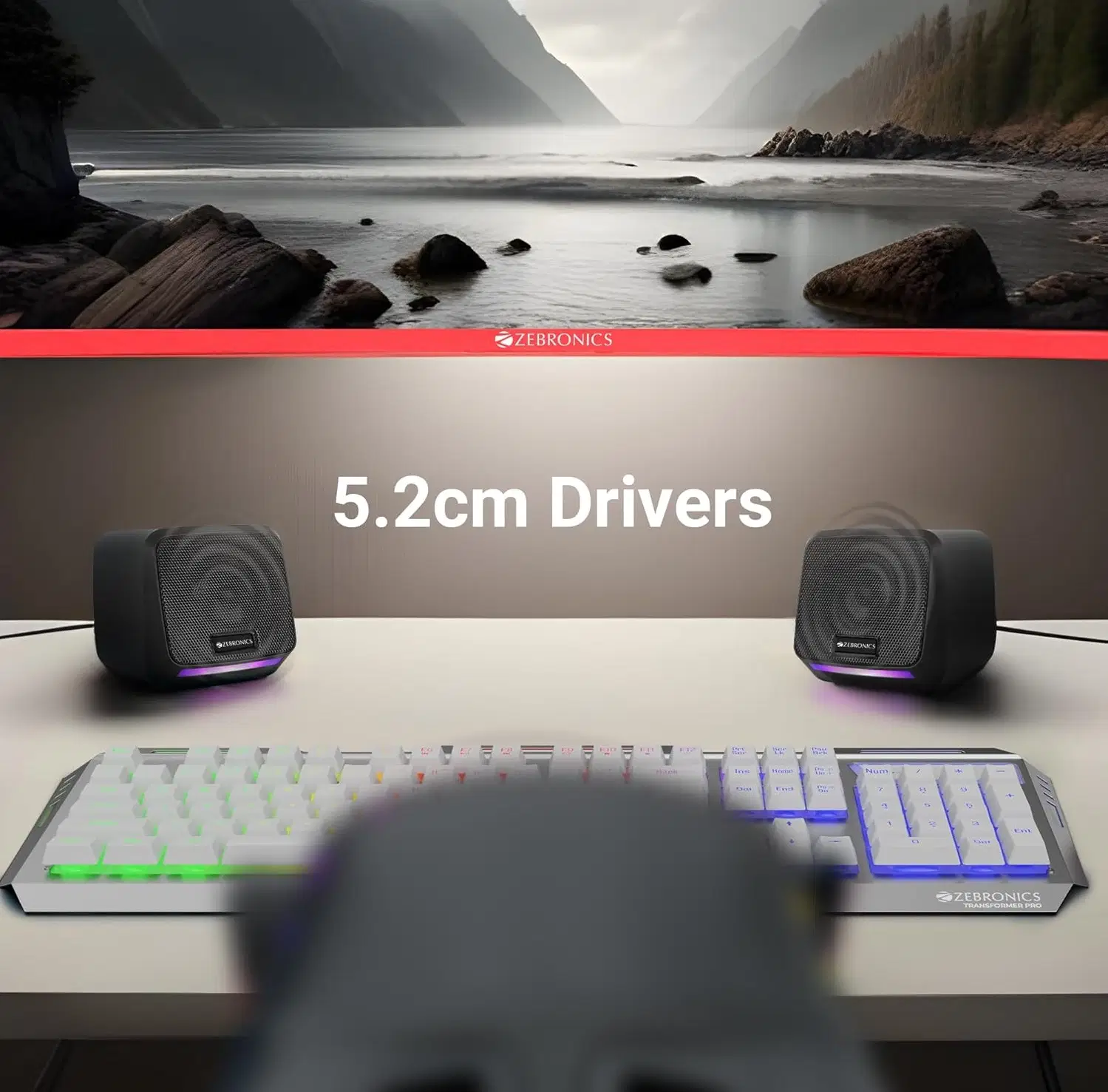 Dynamic output: Apt for delivering immersive sound with clear audio, the ZEB-Igloo 1 2.0 speaker operates at 8W, ensuring a captivating listening experience