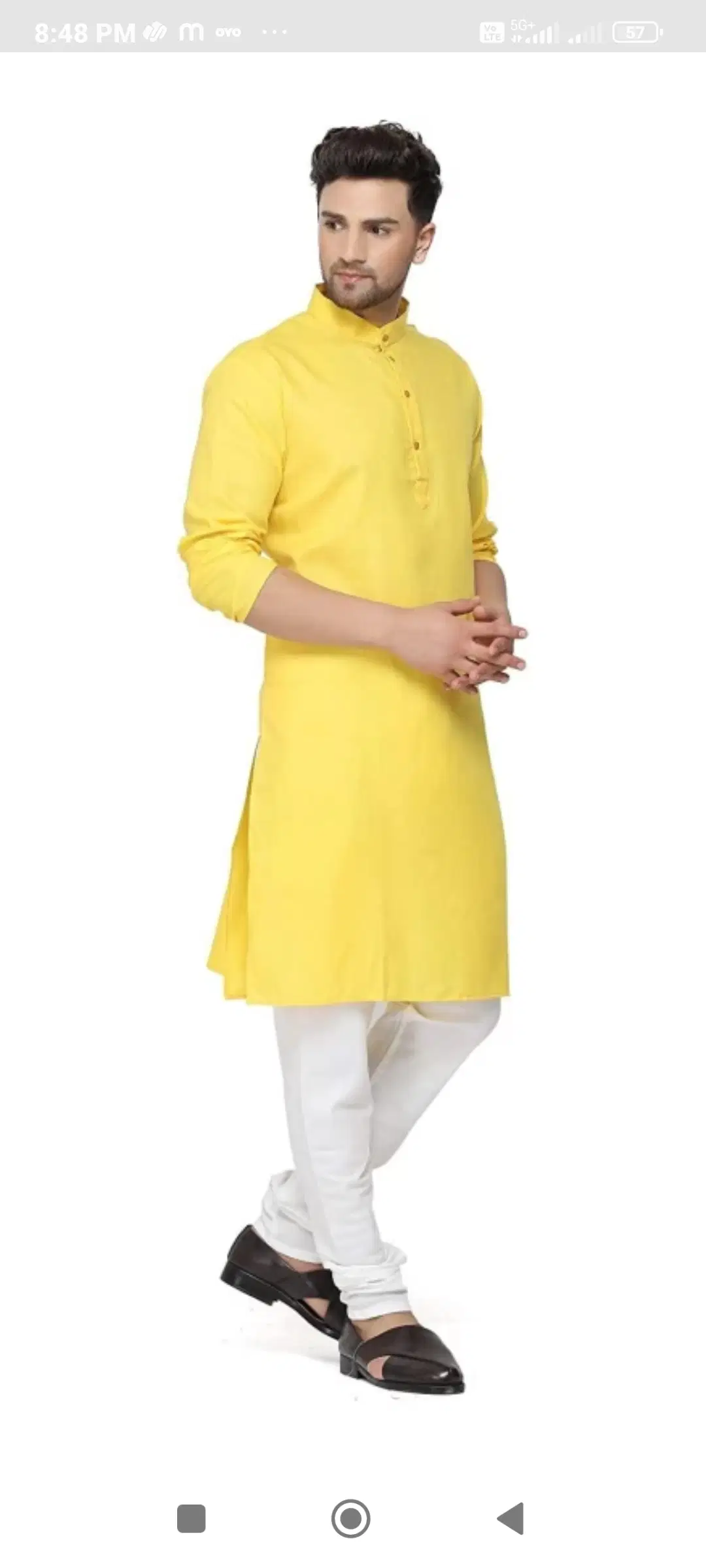 Yellow Cotton Blend Men’s Regular Kurta ( Pack of 1 )